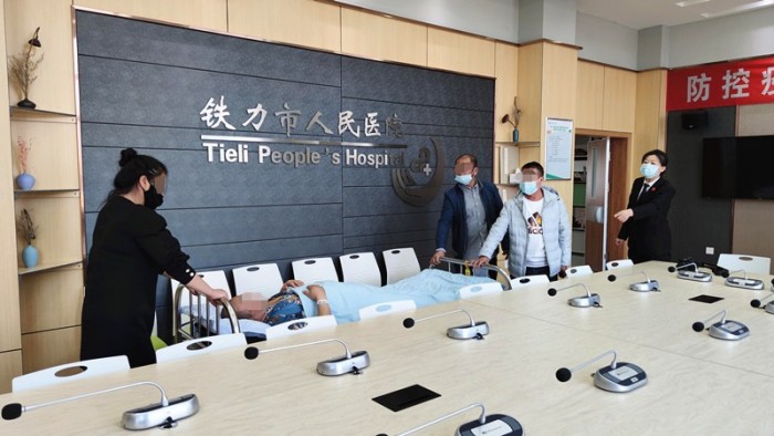 铁力市医院领导得知此种情况,积极给予协调解决开庭处所、临时法庭布置、孙某卧床出庭等事宜的支持。主审人对庭审做了充分的准备,笔记本电脑、小型打印机、安检设备一一到位,庭审工作准备就绪。