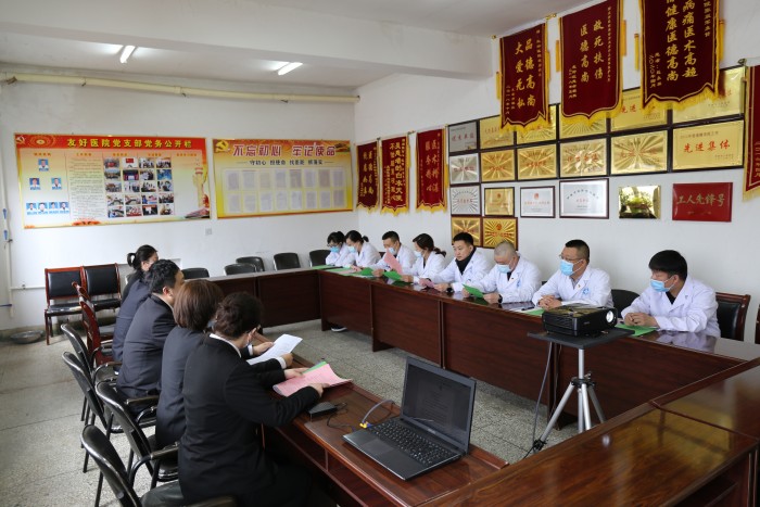 活动中,党小组一行人与医务人员召开了座谈会,就教育整顿工作征求意见建议。党小组成员、副院长付洪涛首先介绍了友好区人民法院开展队伍教育整顿的工作情况及召开座谈会的目的、意义。同时,讲解了《医疗事故处理条例》、《中华人民共和国民法典》等相关法律法规。