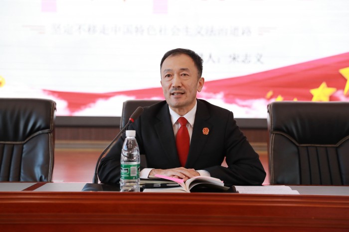 3月31日下午,伊春市中级人民法院举办习近平法治思想专题讲座,伊春中院党组成员、政治部主任宋志义作为主讲人,为广大干警带来了一堂生动的讲座。院党组班子成员及全体干警参加了本次讲座。