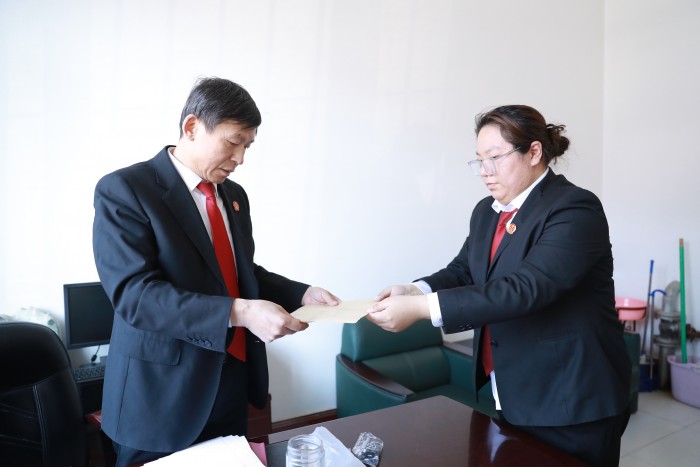 近日,省法院石时态院长向全省法院干警家属和离退休干警分别致公开信。为进一步推动教育整顿工作走深走实覆盖更广范围,4月9日伊春市中级人民法院办公室组织工作人员将公开信郑重装入信封向67名退休干警158位职工家属转达石院长的敬意和问候。