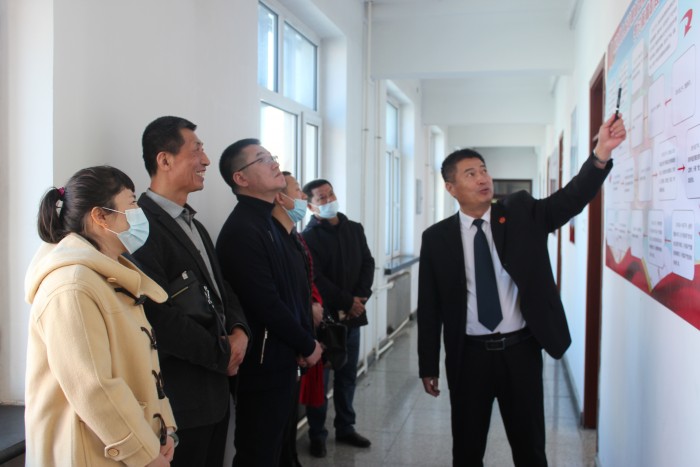 刘德慧院长带领来访者参观了法院队伍教育整顿流程图展板,介绍了政法队伍教育整顿开展以来的工作情况。