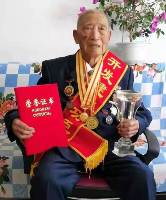 传奇老英模刘章文,99岁高龄,79年党龄,1941年参加八路军,1943年加入中国共产党,在军队中先后担任班长、排长、连长等职务,参加过大小战役40多次,经历过战斗上百次,荣立战功八次,珍藏军功章五枚。全国解放后,刘章文积极响应组织的号召,从河南奔赴伊春林区参加开发建设。先后到伊春林管局抗美河、汤北、新青、汤南经营所工作。在红星林业局的开发建设中,立下了不可磨灭的功劳。多年来,刘章文老人始终坚持革命军人的优良传统,吃苦在前,率先垂范,注重子女教育,践行了革命老前辈“献了青春献终身、献了终身献子孙”的奉献精神,其孙子刘金勇,现为丰林县人民法院司法警察,也是政法队伍工作者中的一员。