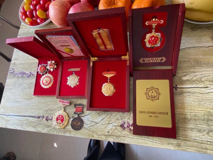 在刘章文老人家中,老人为支部党员们讲述了抗战那些年艰苦的战斗环境、生存环境、敌我优劣形势以及几次大型战役获得胜利的艰难,并给大家展示了自己珍藏的军功章,市政府、林业局等单位颁发的各种荣誉勋章。