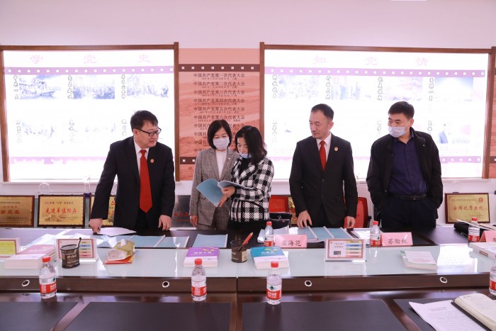 4月20日上午,市党史学习教育第五巡回指导组苏贻秋一行三人到市中级人民法院开展党史学习教育巡回指导。党史学习教育领导小组办公室成员参加会议。