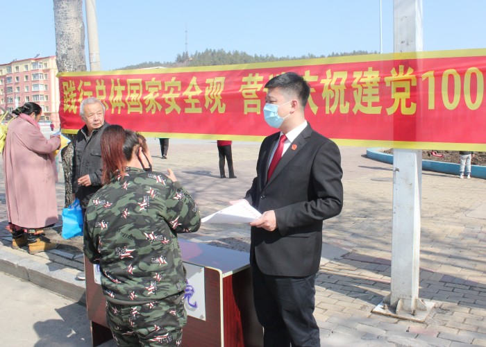 为进一步提高全民国家安全意识,营造国家安全宣传教育浓厚氛围,4月15日上午,伊春市南岔县法院组织干警到南岔县同心广场,以“践行总体国家安全观 营造庆祝建党100周年良好氛围”为主题开展“全民国家安全教育日”宣传教育活动。