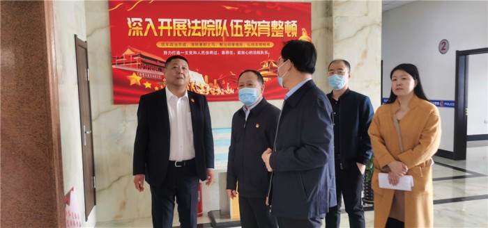 4月21日,省政法队伍教育整顿第八指导组副组长马国同志深入到伊春政法队伍教育整顿示范单位铁力市法院督导推进队伍教育整顿工作,伊春市中院党组书记、院长韩日强陪同督导。