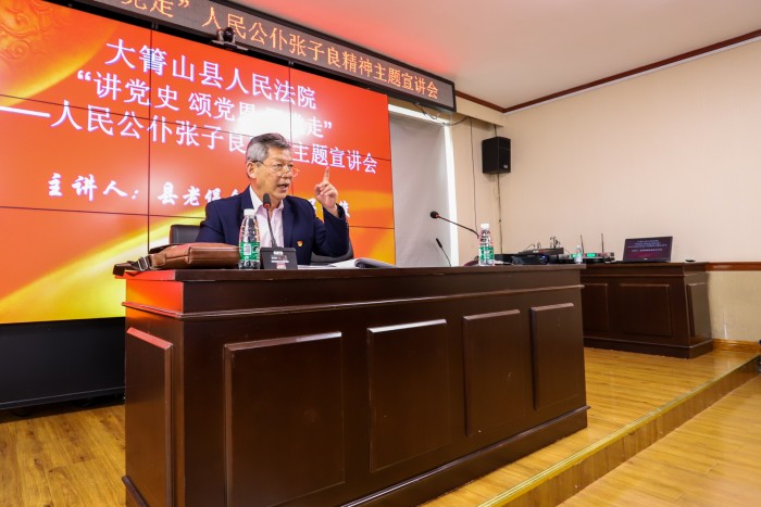 为进一步推动党史学习教育走深走实,持续强化队伍教育整顿政治教育和英模教育,4月22日下午,伊春市大箐山县法院举办了“讲党史、颂党恩、跟党走”——人民公仆张子良精神主题宣讲会,邀请老党员县老促会副会长吕文俊同志做专题辅导。通过弘扬张子良精神,以榜样的力量鼓舞和激励干警学党史、悟思想、办实事、开新局,迅速掀起党史学习教育的热潮,进一步提高广大干警对党史学习教育重要性的认识。