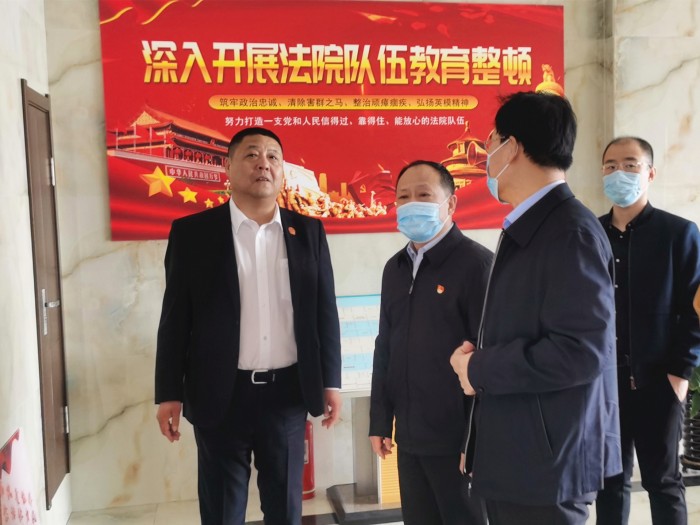 4月21日,省政法队伍教育整顿第八指导组副组长马国同志深入到伊春政法队伍教育整顿示范单位铁力市法院督导推进队伍教育整顿工作,伊春市中院党组书记、院长韩日强陪同督导。