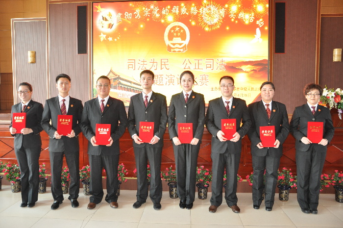 代表中院八个党支部参加比赛的青年干警选手围绕“司法为民公正司法”的主题,用《党旗鲜艳贴民心 公正廉洁铸法魂》、《走群众路线