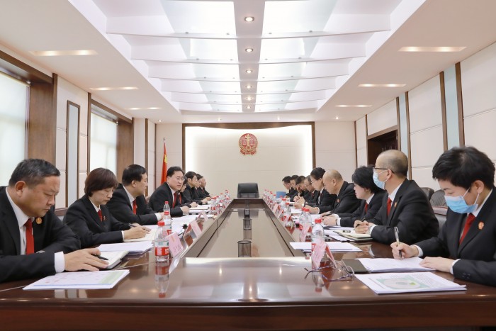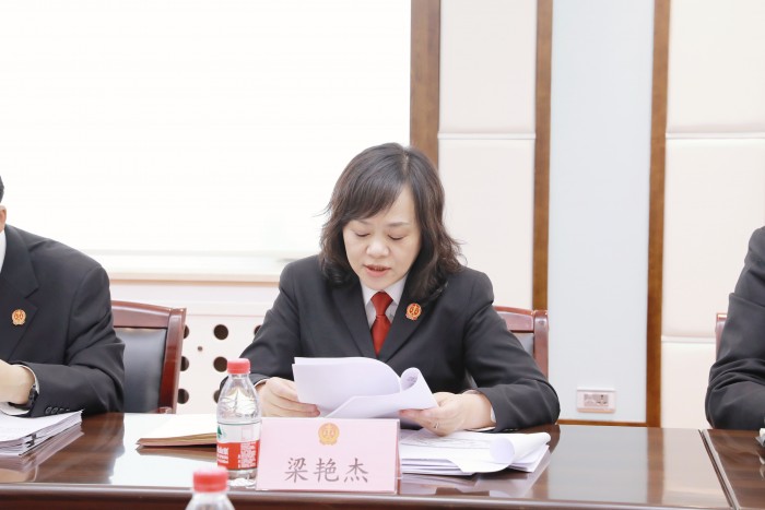 由党组副书记、常务副院长梁艳杰传达全省政法队伍教育整顿现场推进会议精神。