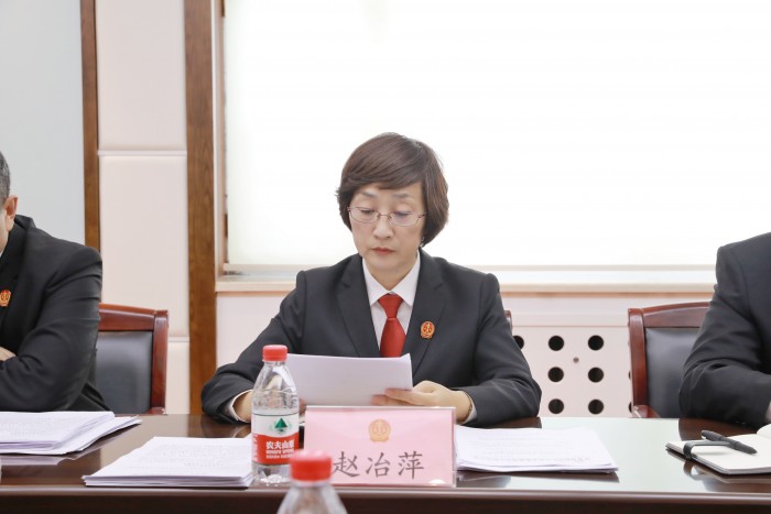 由党组成员、副院长赵冶萍传达全省法院法庭工作经验交流会议精神。