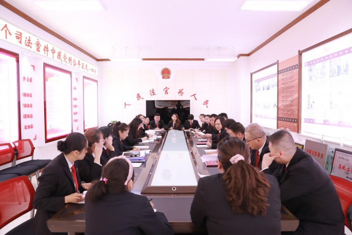 伊春中院立案二庭、审监庭、研究室、机关党委、行装处、办公室全体干警参加会议。