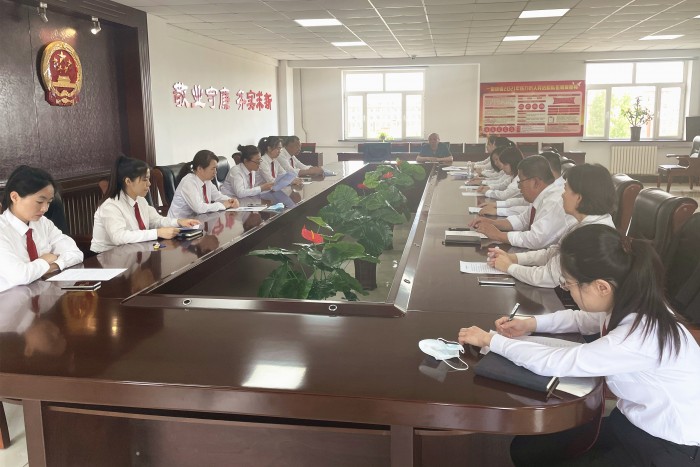 根据省、市、县关于开展政法队伍教育整顿工作的部署要求,5月29日上午,铁力市法院党组召开队伍教育整顿专题民主生活会。省第八指导组领导袁勇、王思家、李欣、侯宇,铁力市政法委副书记王春莉,铁力市委组织部刘明辉,铁力市纪委监委赵俊峰等同志到会指导,铁力市法院党组书记、院长王连勇主持会议,院党组班子成员参加会议。