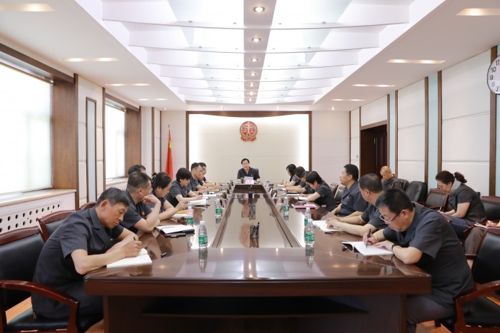 6月7日,伊春市中级人民法院召开党组(扩大)会议暨第13次教育整顿领导小组会议,党组书记、院长韩日强主持会议,班子成员及各庭室负责人参加会议。