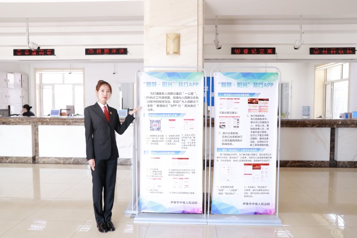 政法队伍教育整顿活动开展以来,伊春中院执行局充分践行“我为群众办实事”服务宗旨,坚持以“让数据多跑路、让群众少跑路”的工作目标,不断升级信息化服务方式,充分推进“智慧·阳光执行”APP的广泛应用,在中院诉讼服务中心和二楼大厅设立“智慧·阳光执行”APP公众端介绍展台,并摆放宣传手册,向当事人介绍和协助下载APP,增强当事人与执行法官间互动交流度,以满足人民群众对便捷司法的要求。