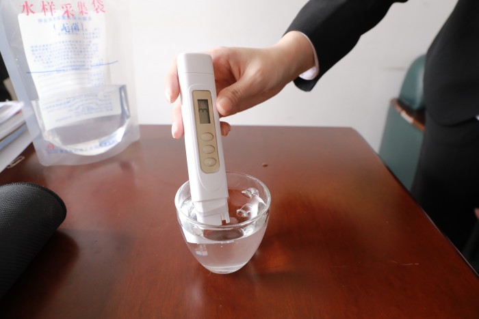 按国家标准GB5749-2006《生活饮用水卫生标准》中对饮用自来水的溶解性总固体(TDS)有限量要求:TDS值需≤1000mg/L,行装处用TDS笔自测,院饮水机冷水测后TDS值仅为3mg/L,院自来水测后TDS值仅为43mg/L(按照要求,TDS笔不可以测热水,高温度水会影响数值真实性)。