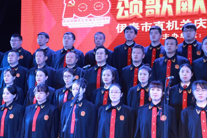 市法院党组高度重视建党百年庆祝活动,在自办庆祝活动的同时,积极参与全市的大型庆典活动。此次 “庆祝建党百年百人大合唱”活动是伊春市建党百年系列活动中的一项重要活动内容,市法院党组发挥示范带动作用,全体上场参与演出。党组、书记院长亲临排练现场指导,党组副书记、常务副院长带队彩排,党组班子成员列队演练,高标准、严要求做好演出的各项准备工作。市法院党组旨在通过组织带领干警参与活动,进一步强化党史学习教育,铸牢政治忠诚,提振精神,展示风貌,以思想的提升,助推行动自觉,以更加优异的司法审判工作新业绩庆祝建党100周年。