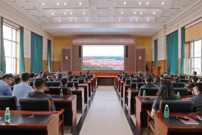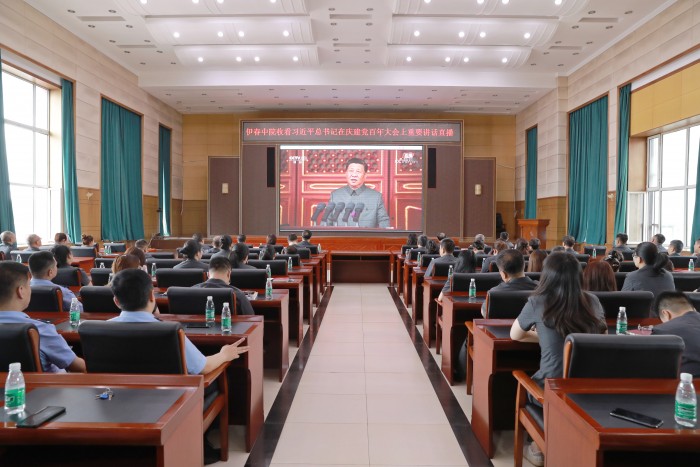 7月1日上午8点,庆祝中国共产党成立100周年大会在北京天安门广场隆重举行。为第一时间收听收看中共中央总书记、国家主席、中央军委主席习近平发表重要讲话现场直播,今天早早的,伊春市中级人民法院百余名干警就来到市中院七楼视频会议室,满怀着激动的心情、热切的期盼等待着庆祝大会盛况现场直播的开始。