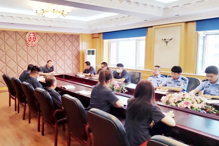 2021年8月5日上午,伊春中院第六党支部召开党员扩大会议,党组成员、执行局局长、第六党支部书记冯久鸿主持会议,第六支部全体党员、执行局全体干警参加会议。