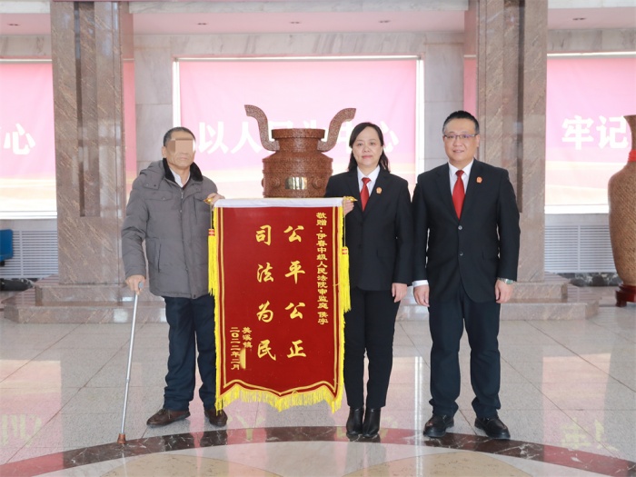 一面鲜红的锦旗,不仅仅是当事人的一份感谢,更是法官肩头上沉甸甸的责任。案结事了,整装待发,审监庭将继续不忘初心,履职尽责。以公正彰显司法威信、以构建和谐为奋斗目标,不断提高审判质效。在案件审理和纠纷调解中不断深入践行为民服务宗旨,不断改进司法服务意识,不断将我为群众办实事走深走实。