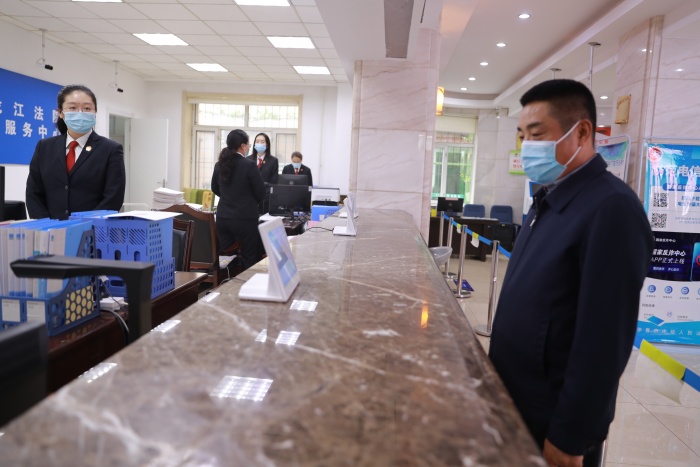 为推动法院“能力作风建设年”活动一体化推进,形成上下协同的良好格局,5月30日、31日,省法院一级巡视员曲民、二级巡视员王君、一级调研员杨忠军、二级调研员葛鹏志、省法院基层处副处长高贵志一行深入伊春市两级法院督导检查“能力作风建设年”工作开展情况并开展“走流程”活动。