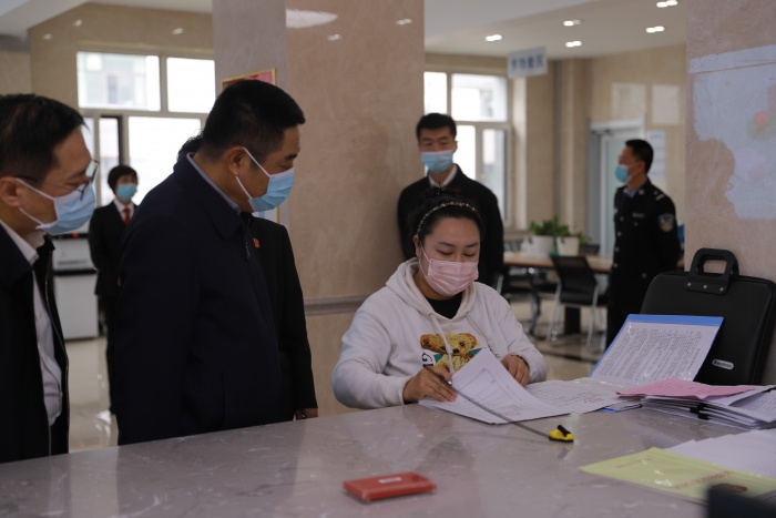 省法院督导组深入伊美区人民法院“走流程”,市中院党组成员、一级调研员林晓明,党组成员、副院长赵冶萍陪同检查。