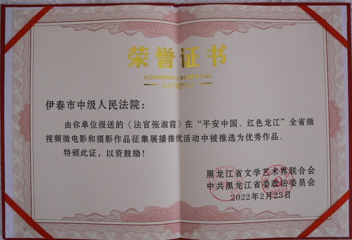 争先创优正当时 | “平安中国,红色龙江”伊春市中级人民法院作品荣获奖项!