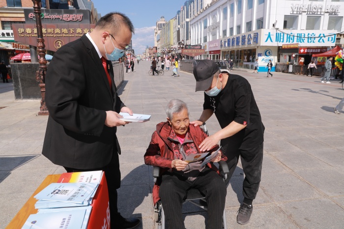 为深入开展打击整治养老诈骗专项行动,不断提升老年人识骗防骗能力和法治意识,切实维护老年人的合法权益,同时持续巩固防范电信网络诈骗宣传效果。6月7日,伊春市中级人民法院开展“反诈防诈”宣传活动,刑事审判庭的干警们在人群较为密集、人员流动较大的步行街设立宣传咨询台,通过摆放宣传展板、接受群众咨询、向群众及商户发放宣传手册、指导群众下载国家反诈中心APP及“一证通查”等方式,向群众全方位解析常见诈骗套路,多角度阐明养老投资风险点及电信网络诈骗惯用手段,不断增强群众自我保护意识。