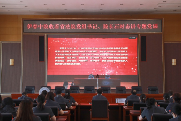 7月1日上午,黑龙江省高级人民法院党组书记、院长石时态以《习近平总书记的读书故事》为题为全省法院干警讲授专题党课。 石时态院长围绕“读岳飞传的故事、在梁家河的读书故事、读《三国演义》的故事、读马列经典的故事、到书店买书的故事、背《兰亭集序》的故事”讲述了习近平总书记不仅高度重视、大力倡导读书和学习,他本人也十分热爱阅读,在日常工作之余感受书籍的力量。习近平总书记曾说:“阅读是人类获取知识、启智增慧、培养道德的重要途径,可以让人得到思想启发,树立崇高理想,涵养浩然之气。中华民族自古提倡阅读,讲究格物致知、诚意正心,传承中华民族生生不息的精神,塑造中国人民自信自强的品格。”