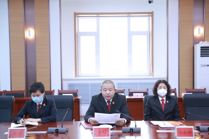 市中院党组成员、副院长王刚主持会议并作讲话;伊春市中院审管办主任王振雷作重要指标讲解、前瞻性工作布置。审判委员会专委谷震墀、李赟及各业务庭室负责人参加会议。