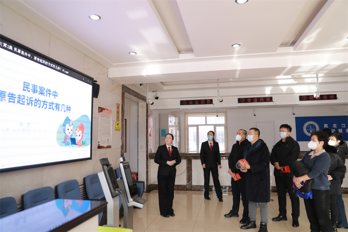 为深入贯彻党的二十大关于“深入开展法治教育,增强全民法治观念”重大部署,及最高人民法院、黑龙江省高院关于“一站式”普法宣传工作要求,结合全省法院工作会议精神,积极推进伊春法治建设,近日,伊春市中级人民法院积极组织开展“一站式”建设普法宣传活动。
