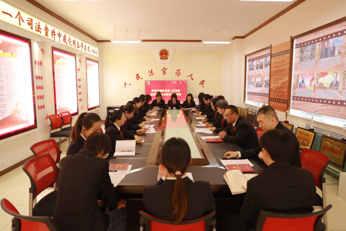 会议由组织委员王振雷主持,第二党支部全体党员干警参会。