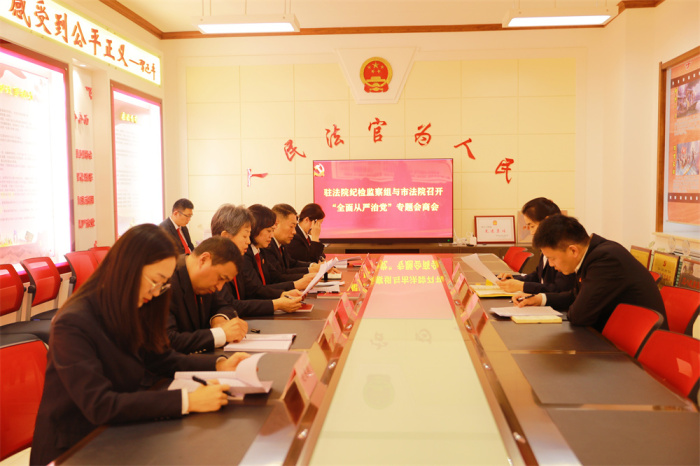 4月3日,驻法院纪检监察组与市法院召开2023年第一次“全面从严治党”专题会商会,全面梳理和分析研判当前法院系统党风廉政建设工作中存在的问题,明确责任,研究对策,抓好整改,推动法院全面从严治党和党风廉政建设向纵深发展,能力作风持续提升。市法院党组副书记、常务副院长梁艳杰主持会议并讲话,驻法院纪检监察组组长郭萍出席会议。