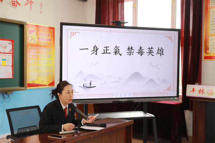 课堂上,伊春中院宋晓庆法官绘声绘色的向学生讲述了林则徐生平事迹和开启禁绝烟毒之路的故事。并结合自身工作经验,通过宣讲青少年拒毒防毒“九不”知识,深刻揭示了毒品的成瘾原因,阐明了沾染毒品,给自身、家庭和社会带来的危害,进一步增强了学生的防毒禁毒意识,对构建安全、和谐、健康的校园环境起到了积极作用。活动最后,宋法官与师生共同喊响“珍爱生命 远离毒品”口号,坚定禁毒决心和信心。