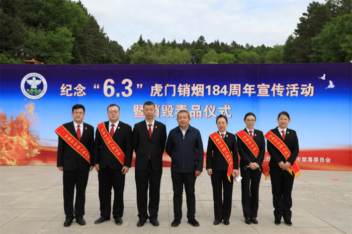 百年销烟,任重道远,铭记历史,不忘初心。为纪念“6.3虎门销烟”的伟大历史壮举,深化全市禁毒宣传预防教育,不断增强群众知晓率、参与度,营造浓厚禁毒宣传氛围,提高群众的防毒拒毒能力,6月2日上午,伊春市中级人民法院党组成员、副院长王刚带领刑事审判一庭全体成员参加伊春市禁毒委组织的“6.3虎门销烟纪念日”宣传活动。