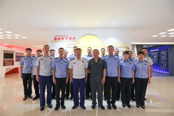 活动中,干警们在伊春市消防救援支队副政委、纪检书记李荣宝的引导下,参观了救援支队廉政教育展厅。