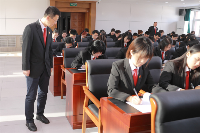 为贯彻落实深化能力作风建设“工作落实年”活动安排,积极开展“学习型机关”创建活动,加大学习力度,提升干警理论素养,检验和巩固学习成果,进一步加强法院队伍建设,11月8日上午,伊春市中级人民法院开展了深化能力作风建设“工作落实年”活动第四季度知识测试。