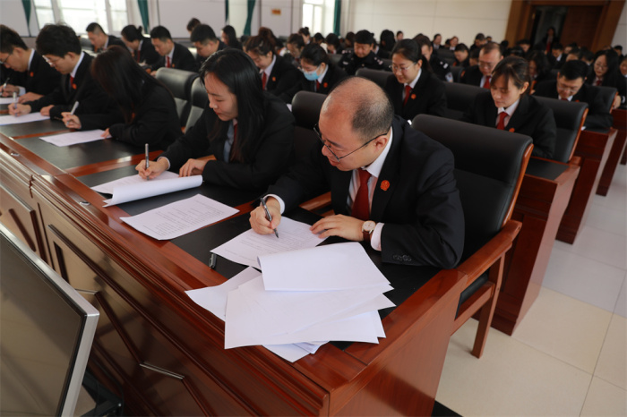 此次测试由市法院党组成员监考,全体在编干警及聘用人员参加,采取现场答题,闭卷形式进行,试题分为单项选择、多项选择、判断题、简答题四个部分。试卷测试内容紧紧围绕党的二十大精神、习近平新时代中国特色社会主义思想,涵盖“工作落实年”活动工作部署及新时代政法干警“十个严禁”、审判执行业务知识等方面的内容,着重检验干警对“工作落实年”活动应知应会的掌握情况,真正做到以考促学、以学促用、学用结合。