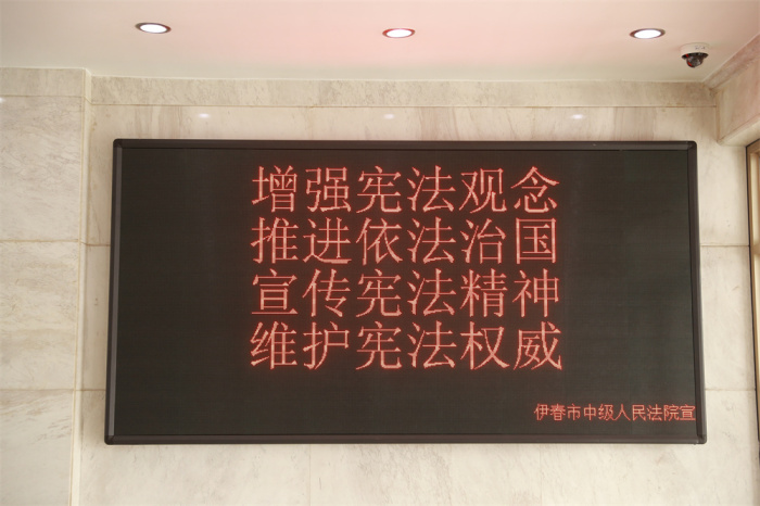 为营造尊崇宪法的良好氛围,贯彻落实“谁执法谁普法”普法责任制,伊春中院组织刑一庭、刑二庭、民一庭、民二庭、行政庭干警到西步行街开展了12·4国家宪法日普法宣传,送法进商家并进行答疑解惑。在市法院院内张贴宪法宣传海报,同时利用LED屏幕展示宪法宣传标语,营造了良好的宪法宣传氛围。