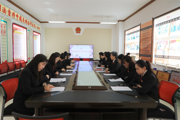 3月6日,为庆祝第114个国际劳动妇女节,伊春市中级人民法院举办以“永远跟党走 绽放‘她’力量”为主题的女干警讲读会。会议由机关党委副书记徐景伟主持,党组副书记、常务副院长王刚出席讲读会讲话并代表院党组送出节日祝福,中院机关女干警代表参加讲读。