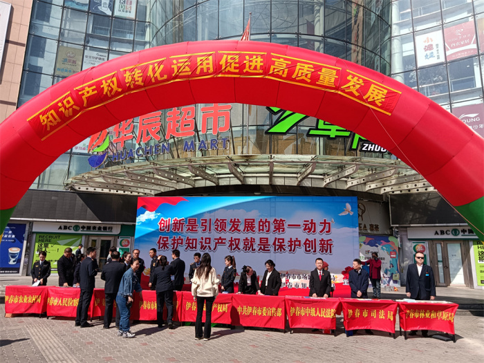 4月20日,伊春中院民二庭联合伊春市市场监督管理局等单位,在伊美区万象城门前面对面、点对点进行普法宣传,向来往的群众讲解知识产权的基本内容和相关法律法规,介绍如何保护知识产权,并结合生活中一些常见的侵权产品讲解侵害知识产权的法律后果,引导广大群众提高知识产权保护意识,切实运用法律途径保护好自身合法权益。本次活动共发放知识产权科普手册500余份,接受法律咨询10余次,讲解知识产权法律法规等20余次。