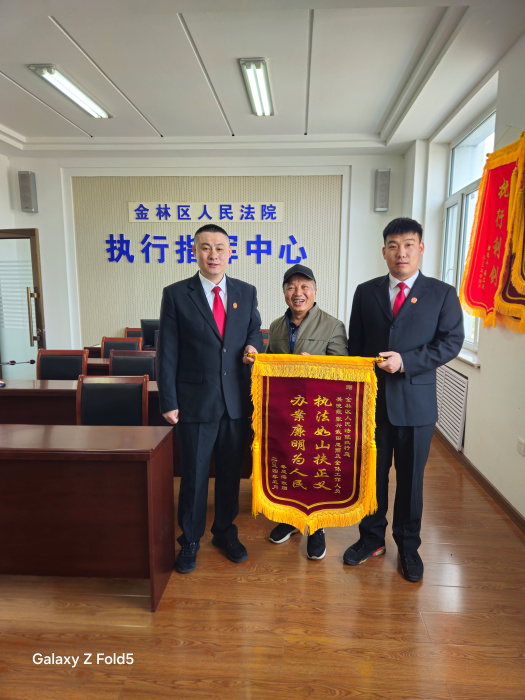 2024年5月6日,金林区人民法院执行局收到一面锦旗,金字闪耀背后的笑容是申请执行人发自内心的感谢,是执行干警对每一起案件执行完毕的满足,更是人民群众对金林区法院执行工作的肯定。