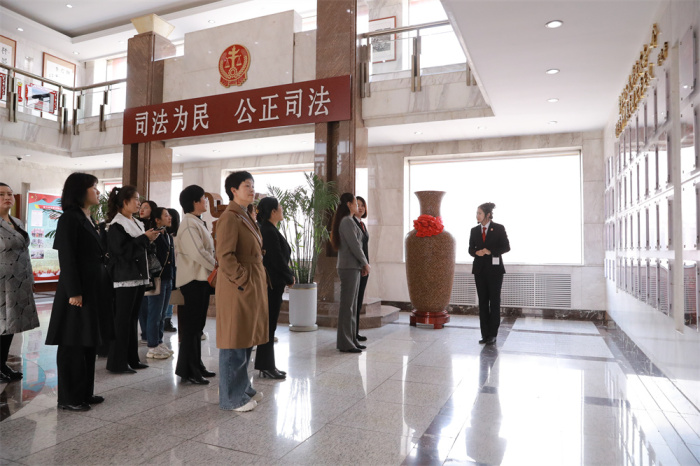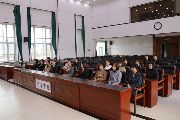 为深入学习贯彻习近平新时代中国特色社会主义思想,持续深化妇女儿童等特殊群体权益保护,5月14日,伊春市妇联党组书记、主席曹旭渴带领妇联的党员干部走进法院参加公众开放日活动。伊春中院党组成员、副院长张秋妍陪同参观。