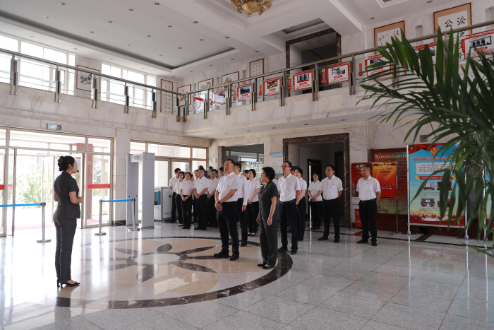 在讲解员的带领下,龙江银行伊春分行的党员干部们分别参观了伊春中院的员额法官墙、数字法庭、诉讼服务中心、警务装备室、院史馆、法治教育宣传基地、党员之家等场所,每到一处,参观者都展现出浓厚的兴趣,纷纷驻足拍照记录。参观结束后,龙江银行伊春分行一行人在六楼党员之家重温入党誓词,随后在七楼大会议室观看旁听庭审视频,从真实的案件中汲取教训,直观了解法院审判工作,提高法治思维。