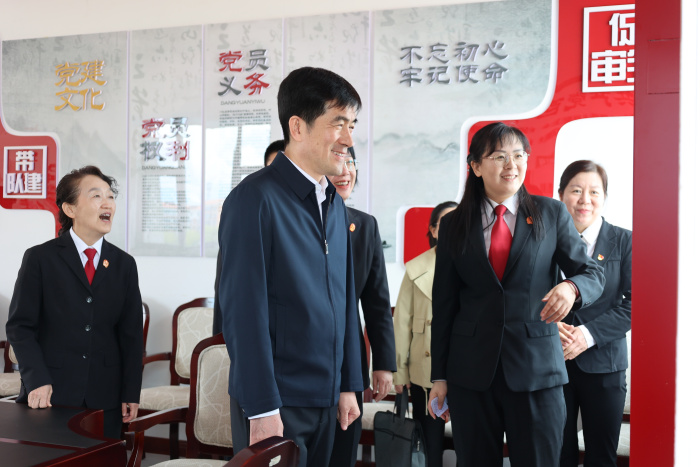 在查看10个基层法院党建工作室、院史馆、图书馆、廉政教育展厅、文化长廊等场所时,王昭权认真听取各院历史沿革、党建特色、文化建设等工作情况介绍,感受基层法院文化建设的浓厚氛围。他强调,要坚持以文化人、以文兴院,深入落实省法院“文化铸品”十项建设工作要求,持续发挥文化品牌重要作用,促进“文化铸品”与司法审判工作同频共振。立足辖区法院特色,开展好“一院一品”文化建设,以文化建设“软实力”赋能法院工作“硬发展”。