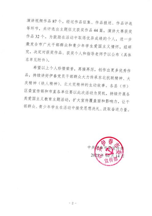 此次获奖,不仅是对黄鑫个人的肯定,更充分彰显了伊春中院干警赓续红色血脉、将红色精神融入司法实践的良好风貌。下一步,伊春中院将持续推动红色精神与法院工作深度融合,引导全体干警传递法院声音、讲好司法故事,在守护公平正义的新征程上凝心聚力、携手奋进。