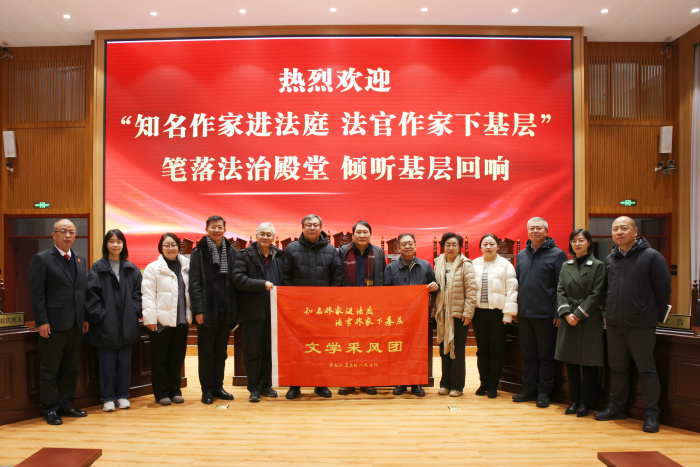 为深入践行习近平法治思想、习近平文化思想,落实新时代龙法“文化铸品”十项建设要求,以“敬意、谢意、心意”搭建法治与文学的沟通桥梁,在全省法院“知名作家进法庭法官作家下基层”活动启动后,11月13日下午,由省法院宣传信息处处长黄河带队,著名作家阿成、艾明波等6名知名作家及3名法官作家组成的13人文学采风团,走进伊春市中级人民法院下辖的铁力市法院及铁林法庭开展调研采风,以笔墨为桥传递法治温度,用文字为媒展现法院风采。