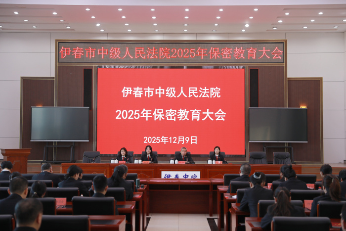为认真贯彻落实党的二十届四中全会精神,深入学习贯彻习近平总书记关于保密工作的重要指示精神,进一步压紧压实保密工作责任,坚决筑牢司法保密防线,为法院工作高质量发展提供坚实保障。2025年12月9日,伊春市中级人民法院召开保密教育大会,市法院党组副书记、常务副院长王刚主持会议并讲话。
