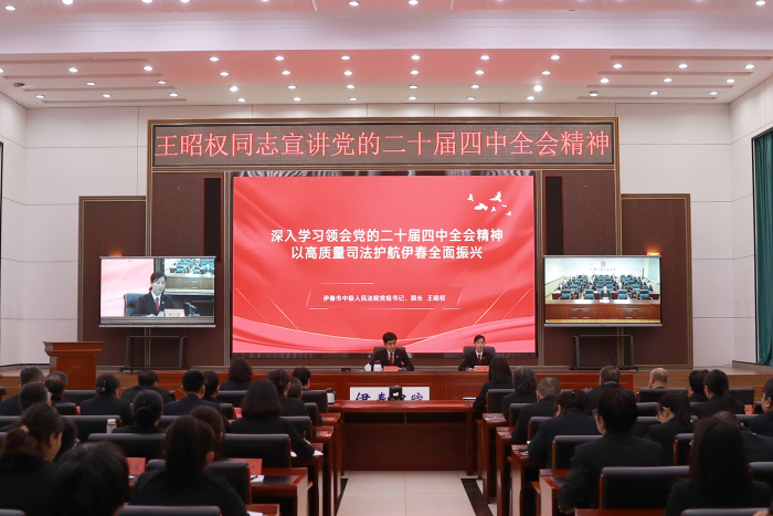 12月11日,伊春市中级人民法院召开全市法院学习贯彻党的二十届四中全会精神宣讲报告会,伊春中院党组书记、院长王昭权为全市法院干警作宣讲报告。