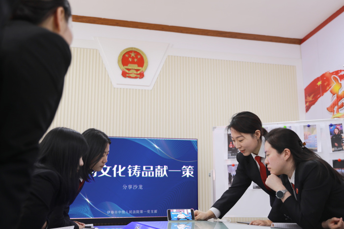 为深入贯彻落实新时代龙法“文化铸品”十项建设要求,凝聚文化共识、激发创新活力,3月19日,伊春市中级人民法院第一党支部举办“我为文化铸品献一策”分享沙龙暨主题党日活动。此次活动旨在搭建一个思想碰撞、经验交流的平台,引导支部党员干警深入思考法院文化的内涵与外延,大家围绕漫画绘制、文稿撰写、视频制作等文化宣传形式,结合日常工作中的实践与探索,为伊春中院“文化铸品”建设工作集思广益、建言献策。